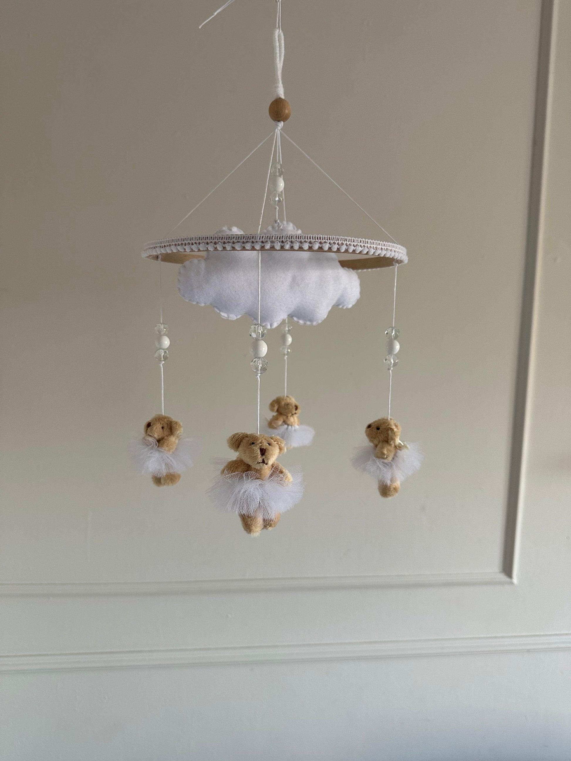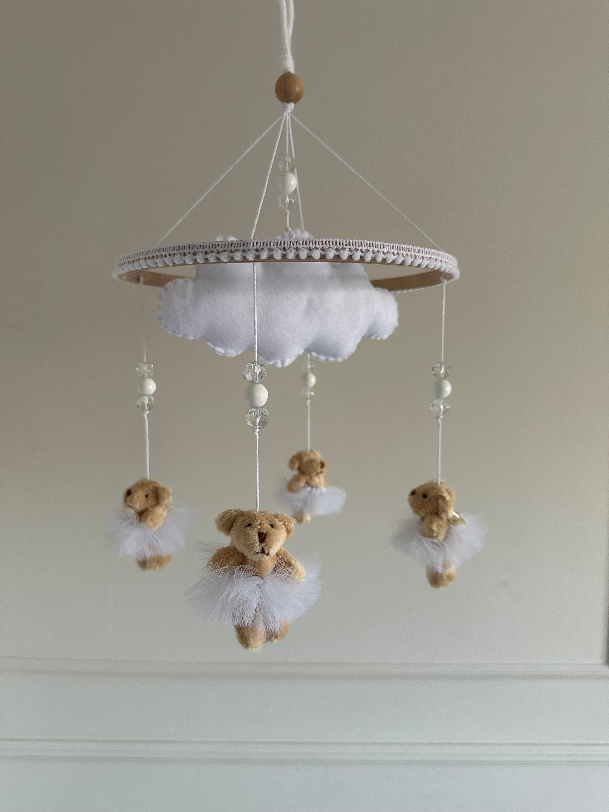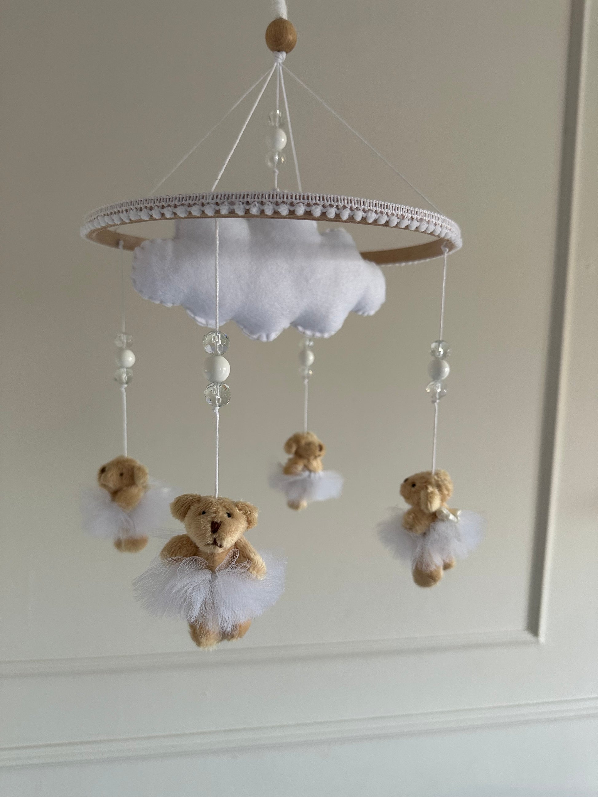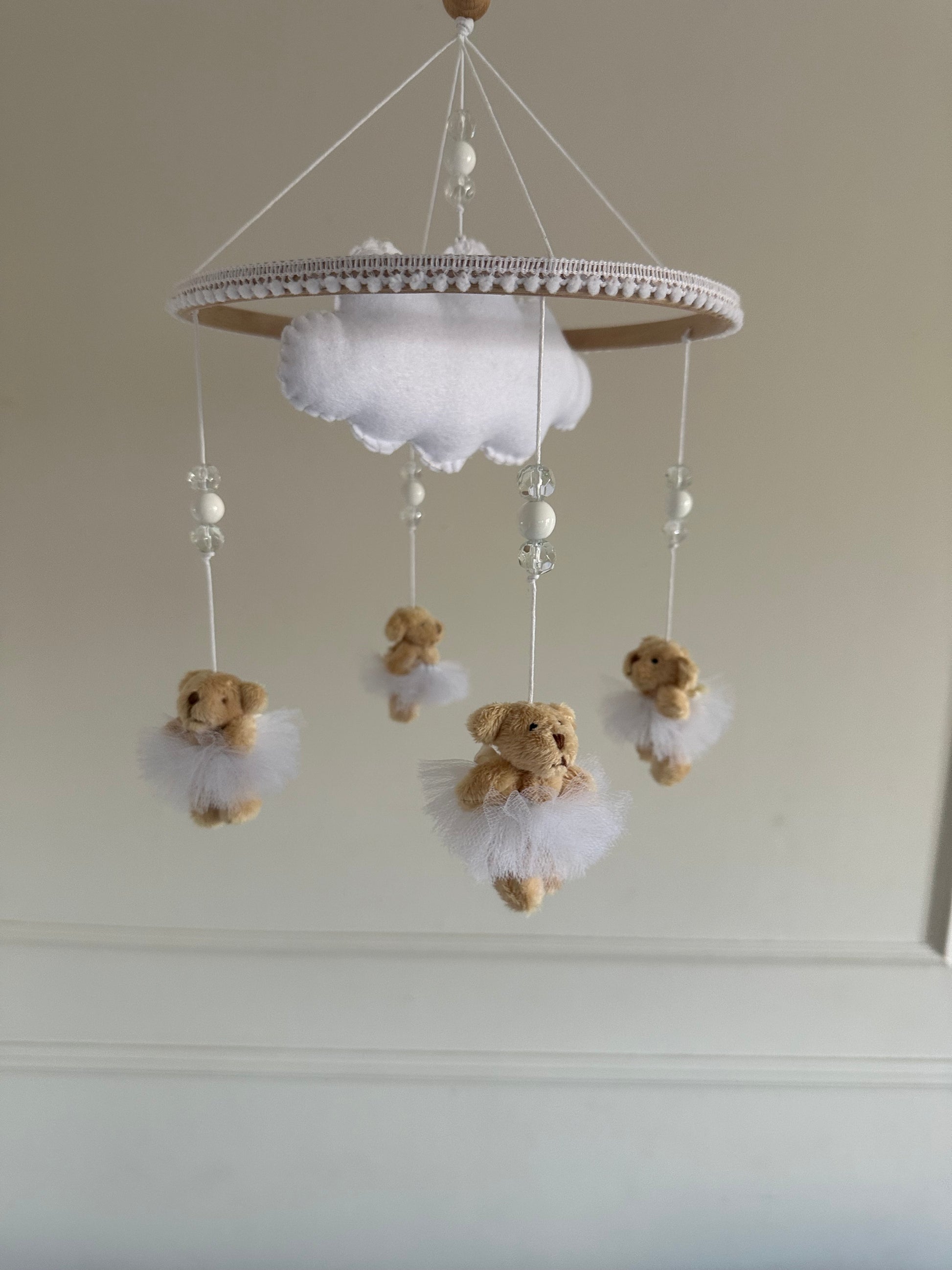 Features 4 adorable little teddy’s (6cm) wearing white tutu skirts with cream little bows on their backs.