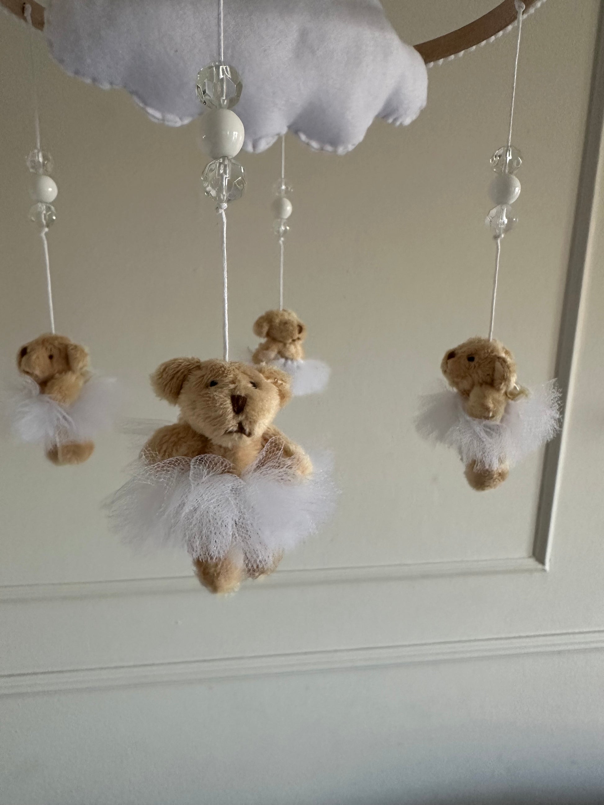 Please note- cot mobiles are for decorative purposes and should always be hung out of child’s reach. It should be removed from the cot when a child can get onto hands and knees into a crawl position.