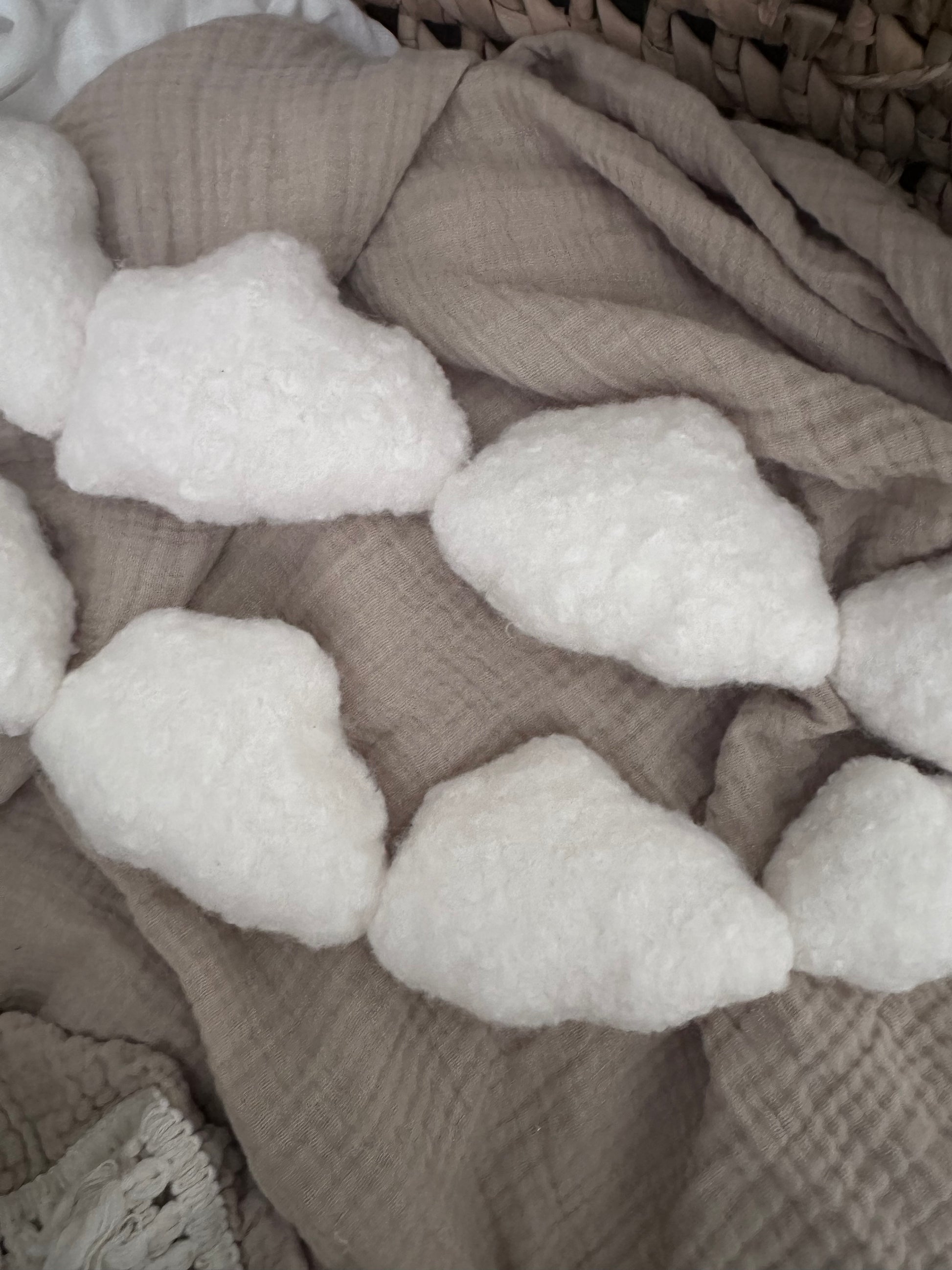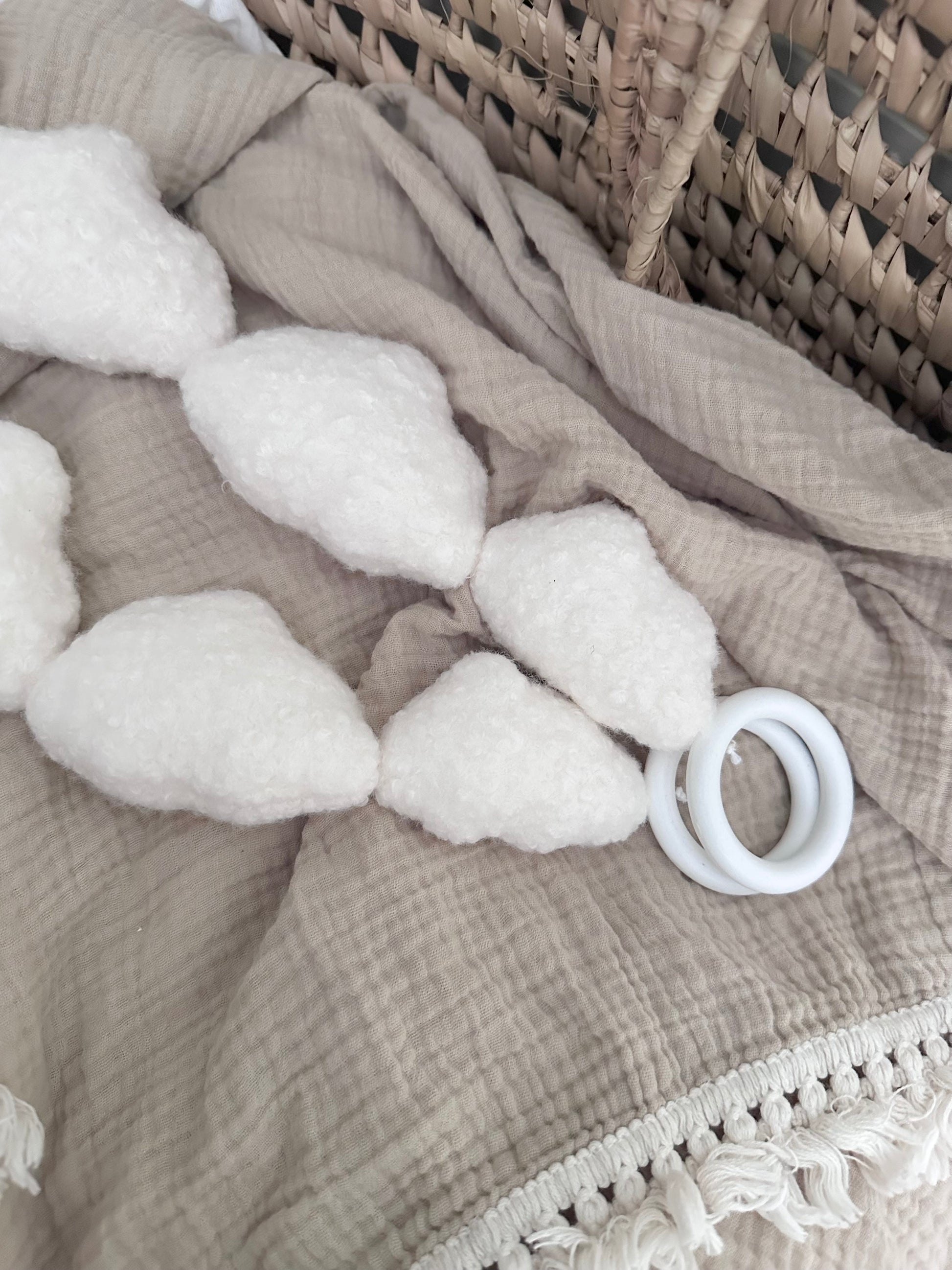 Handcrafted with 2 small and 2 large clouds made from soft quality Boucle fabric.
